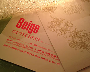 Seit 1996 entwerfen wir unter dem Label Beige Kleider und Accessoires mit einer eigenen Ästhetik in höchster Qualität. Der Strick wird in enger Zusammenarbeit mit einer Schweizer Manufaktur exklusiv für unsere Kollektionen produziert.
