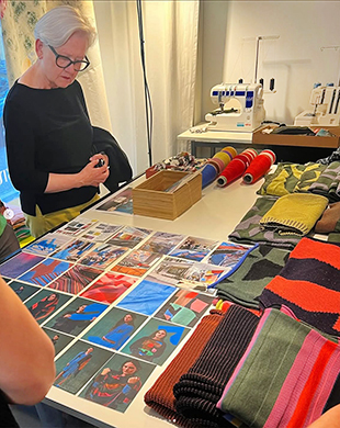 Making of Autumn/Winter 2025/26 im Studio mit Hintergrund Curtain «Vivid» handpainted by Beige. All swiss made with love.