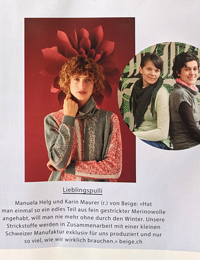 «Hat man einmal so ein edles Teil aus fein gestrickter Merinowolle angehabt, will man nie mehr ohne durch den Winter... Vielen Dank! Dörte Welti, Brigitte Redaktion Schweiz
