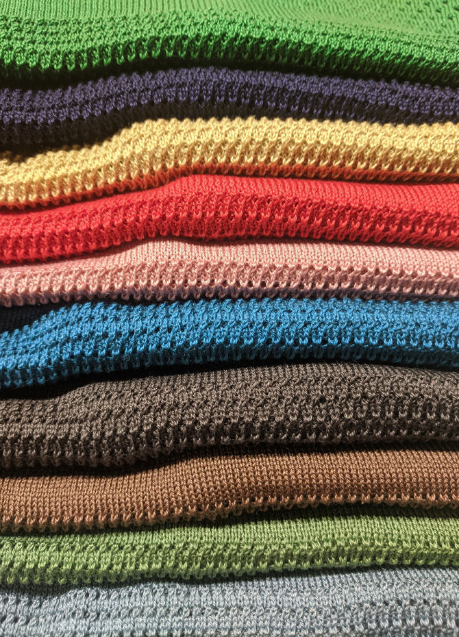 Mut zur Farbe: Aus der gesamten Farbpalette unserer Garne kannst du dir dein eigenes Lieblings-Colorit zusammenstellen. Wir produzieren für dich dein Einzelstück in unserer Schweizer Strickmanufaktur.