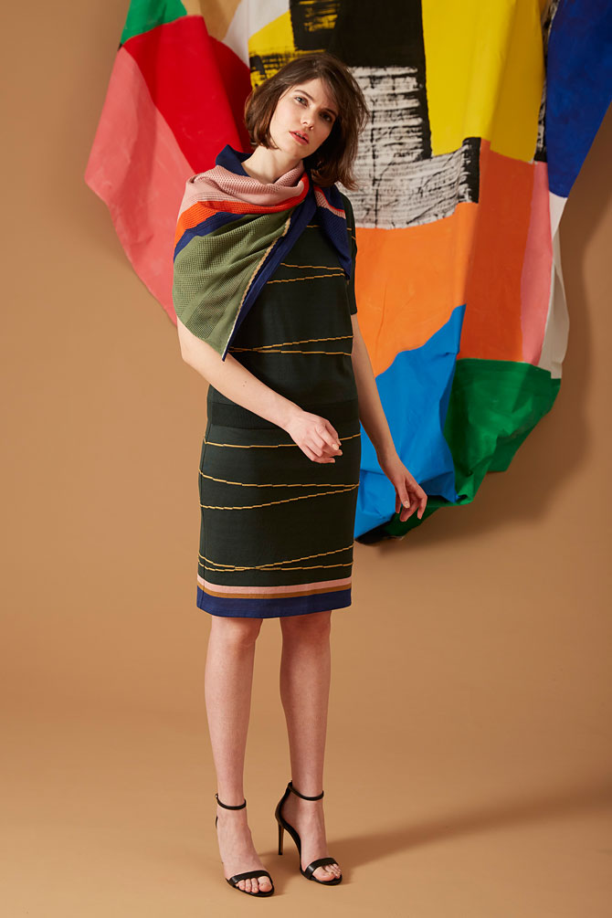 dunkelgrün/ sandgelb/ multicolorStretchfutter: hellblauFeiner Intarsiastrick100% mercerisierte BaumwolleSwiss made