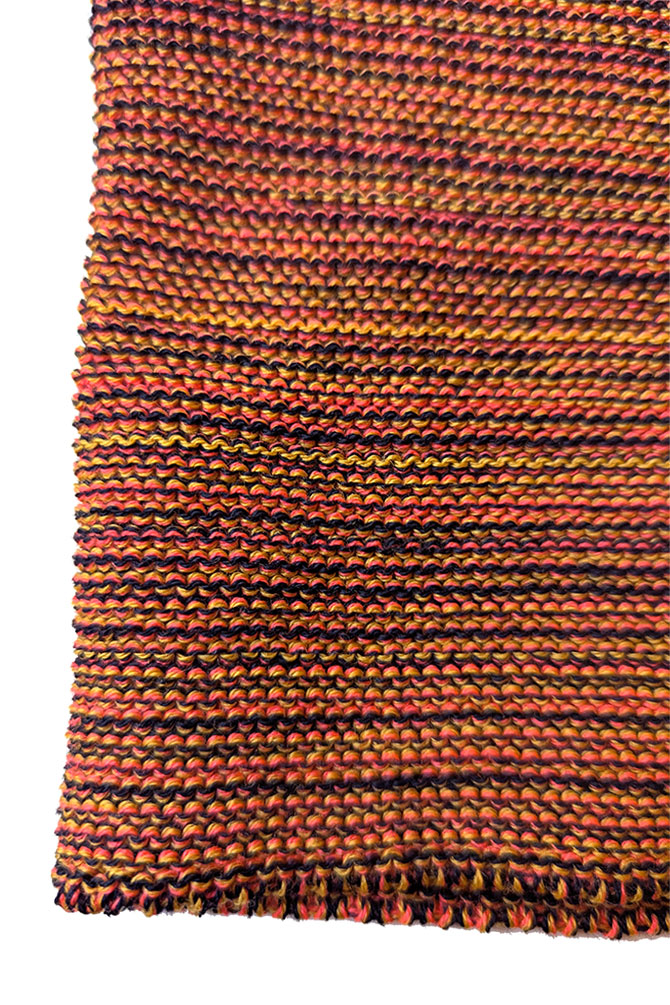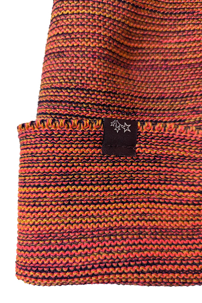 Mixed colors: neonrot/ yellow ocher/ schwarz, Lurex: bronce100% Merinowolle, LinksstrickWaschen: 30° SchongangSwiss made