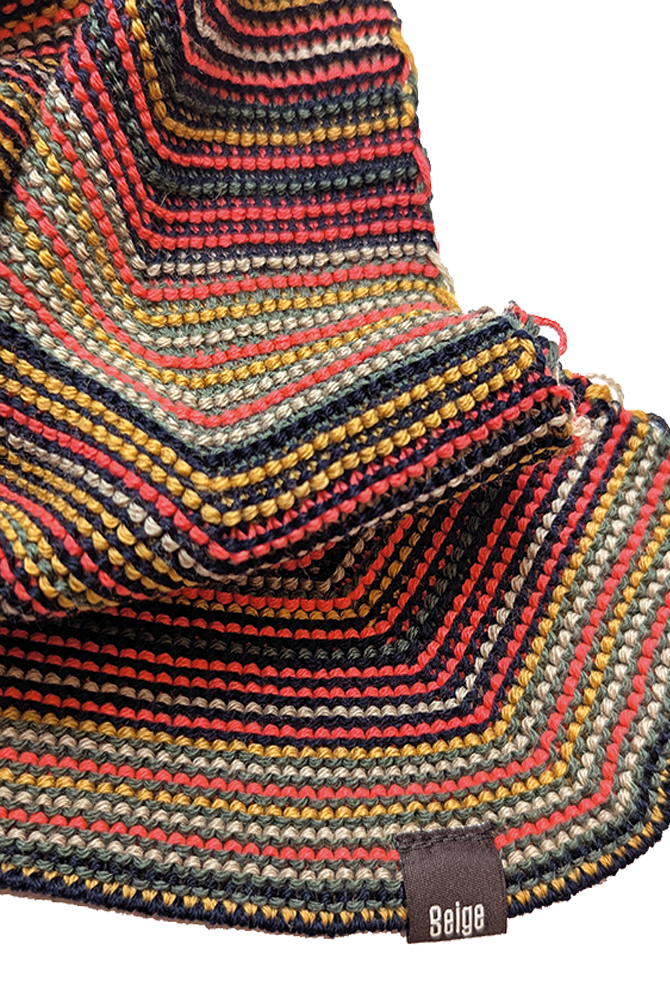 marine/ lodengrün/ neonrot/ reh/ goldgelbFormgestrickt, dreieckig100% Merinowolle, LinksstrickWaschen: 30° SchongangSwiss made