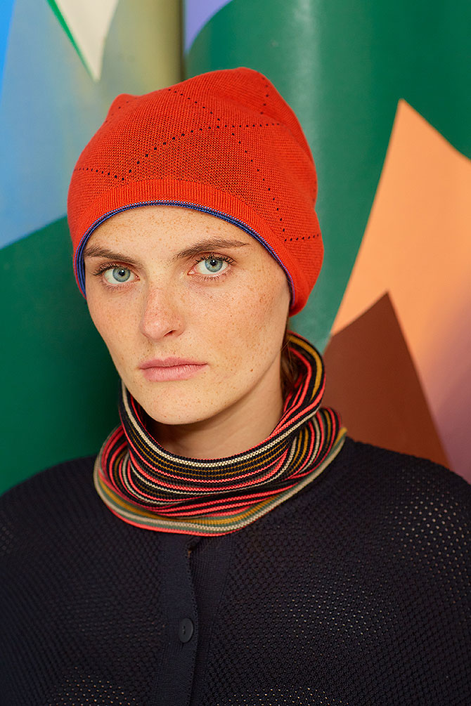 Seite 1: schwarz/ lapisblue/ juicy redSeite 2: juicy red/ marineEinheitsgrösse100% Merinowolle, JaquardstrickWaschen: 30° SchongangSwiss made