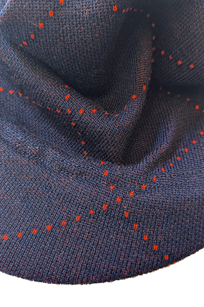 Mütze mit Dächlimarine/ juicy redEinheitsgrösse100% Merinowolle, JaquardstrickWaschen: 30° SchongangSwiss made
