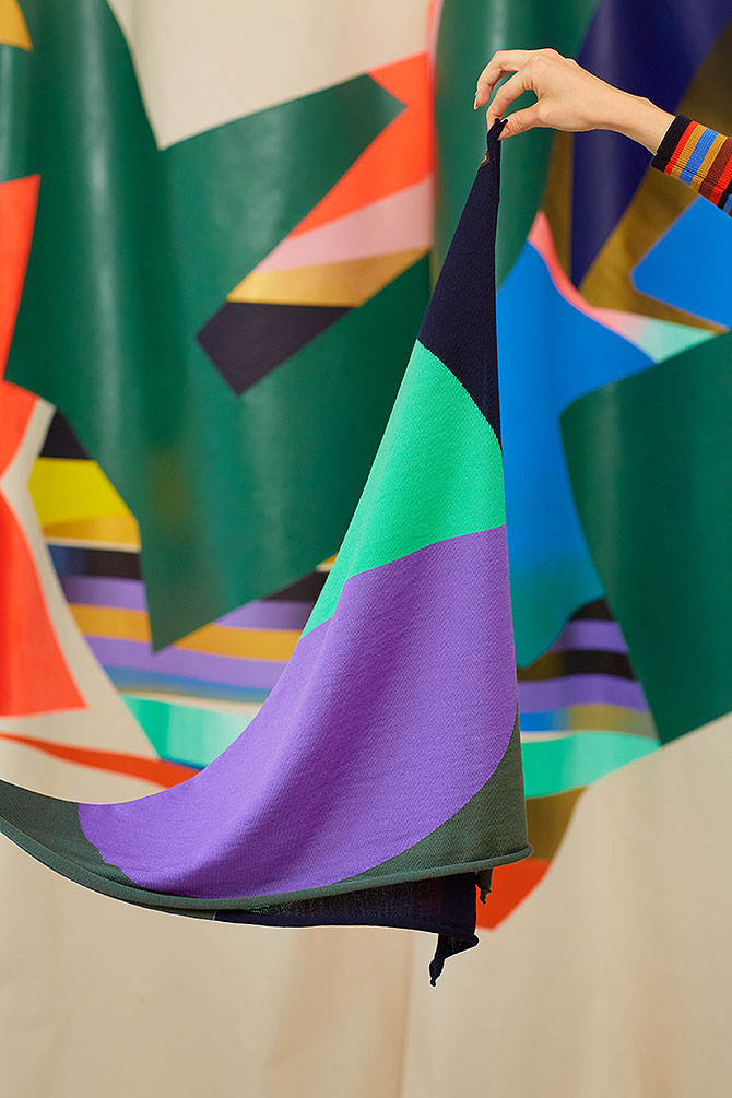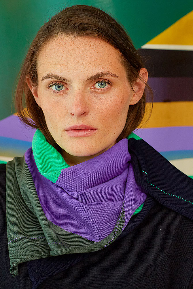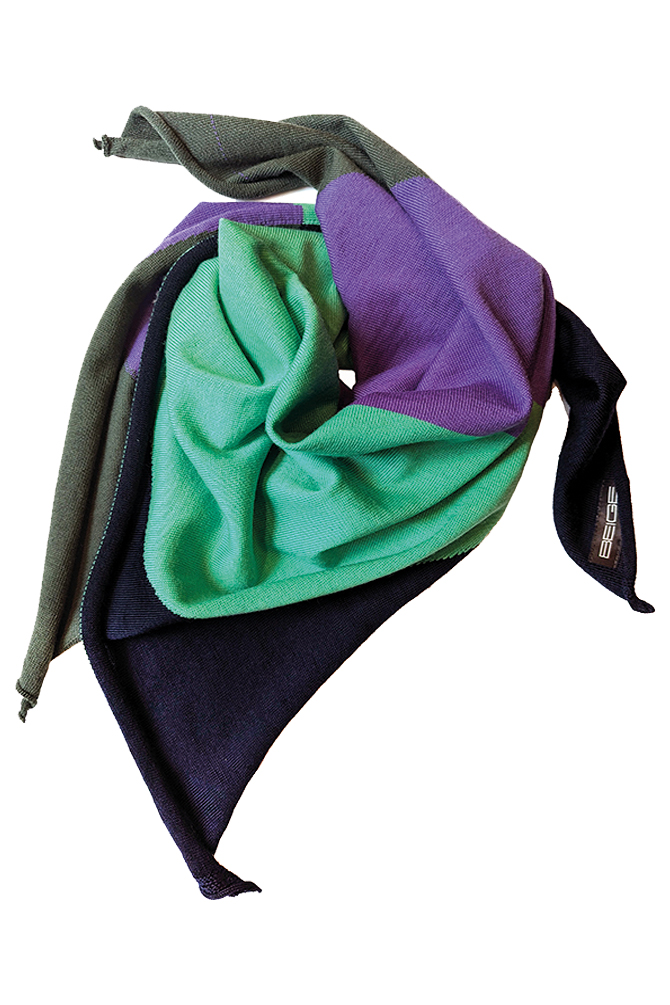 marine/ mint/ lilac/ lodenquadratisch, ca. 70 cm x 70 cm100% Merinowolle, fein gestricktSwiss made