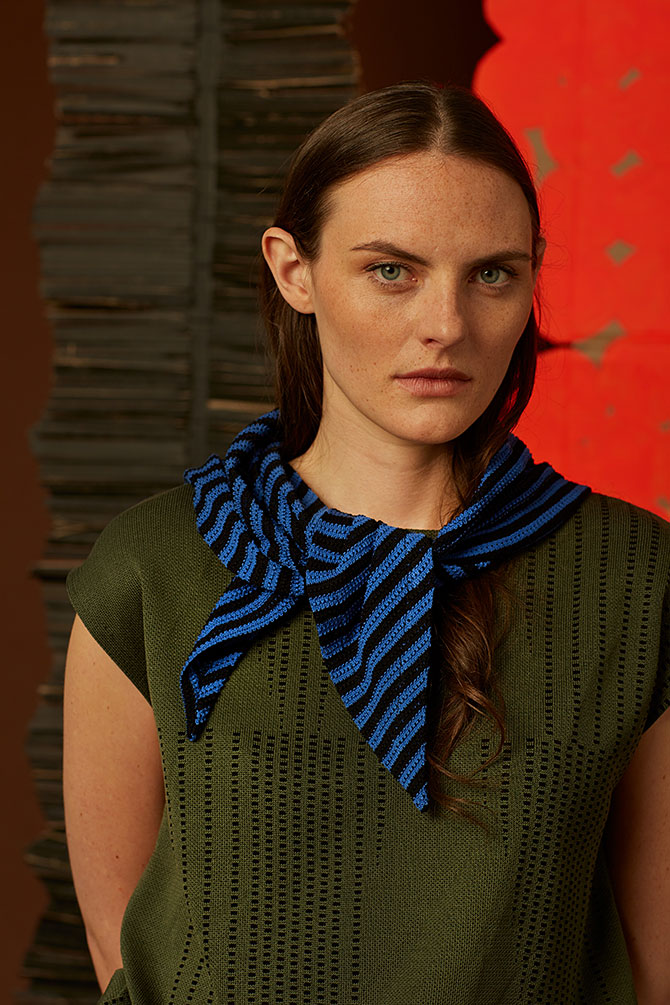 schwarz/ cobalt blueDreieck längere Seite: 98 cmDreieck kürzere Seite: 72 cm100% Baumwolle, LochmusterstrickSwiss made